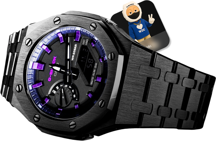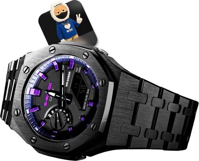 Кастомизиция G-SHOCK практически безгранична. Циферблат, стрелки, часовые метки, внутренний обод, стекло и корпус – все это подлежит кастомизации.