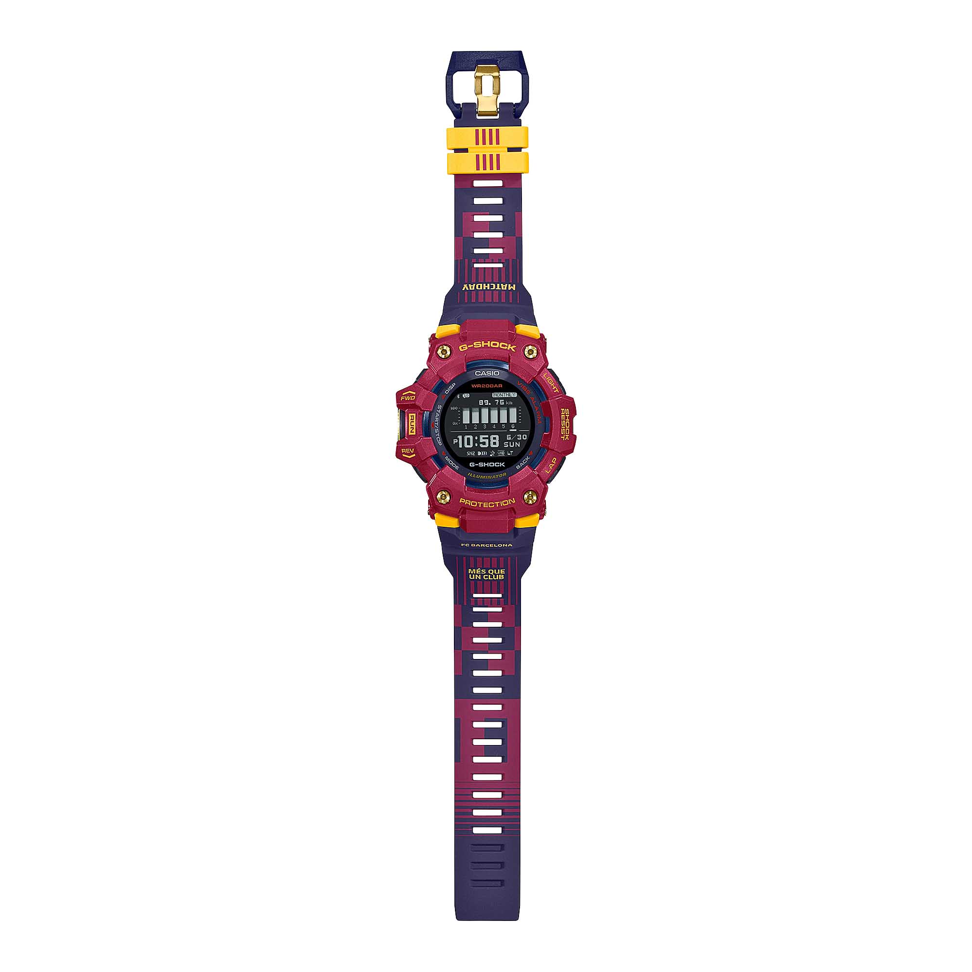 G-Shock GBD-100BAR-4, как и коробка, окрашены в цвета формы каталонского клуба. Яркий корпус с черным инверсионным MIP дисплеем.