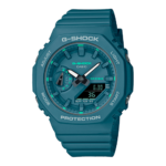Представляем G-Shock GMA-S2100GA-3A! Тонкие, легкие и компактные часы с безелем в форме октагона и однотонным дизайном. Новая серия GMA-S2100 – это уменьшенная версия популярных во всем мире GA2100. Восьмиугольный безель, плоский корпус, простые часовые метки в виде штрихов и защитная конструкция из карбоновой прослойки – это и есть отличительные черты GMA-S2100. GMA-S2100GA-3A выполнены в бирюзовом цвете с бирюзовыми метками часов и зелеными акцентными элементами.
