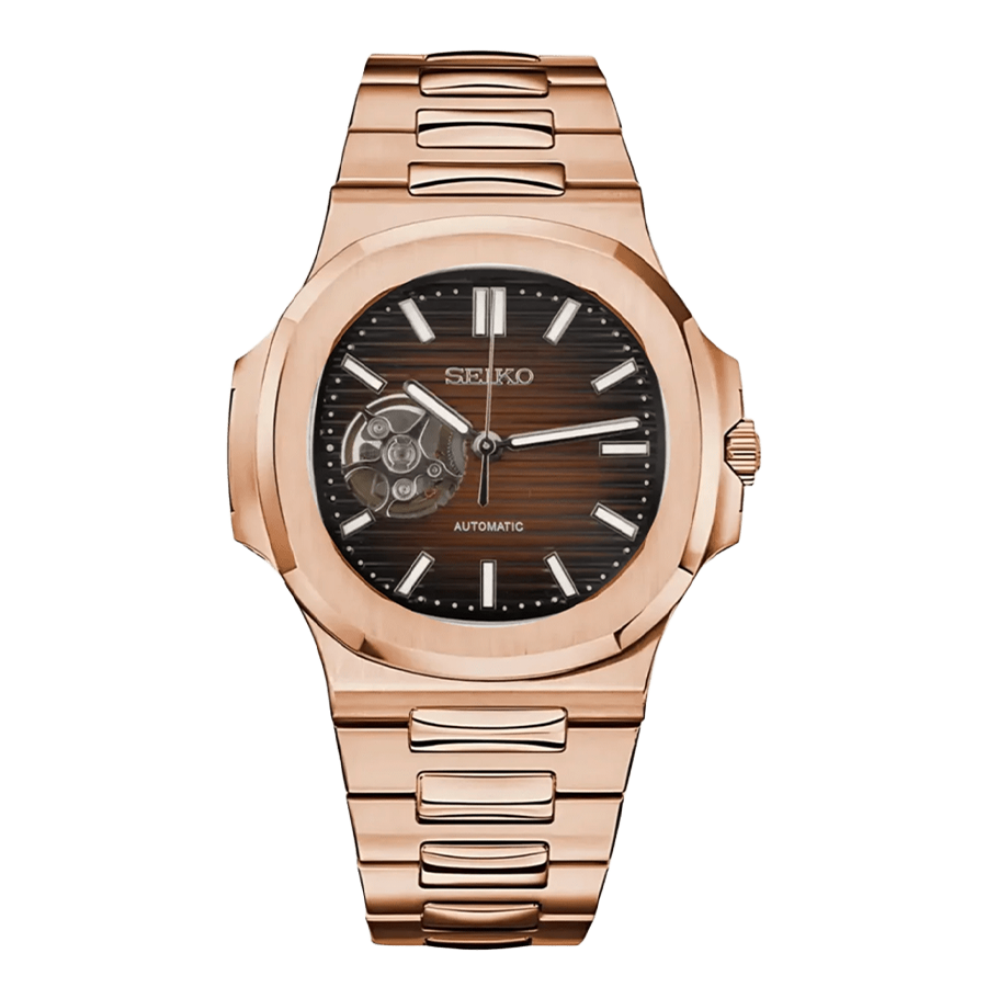 SEIKO MOD Nautilus Rose Gold brown open heart