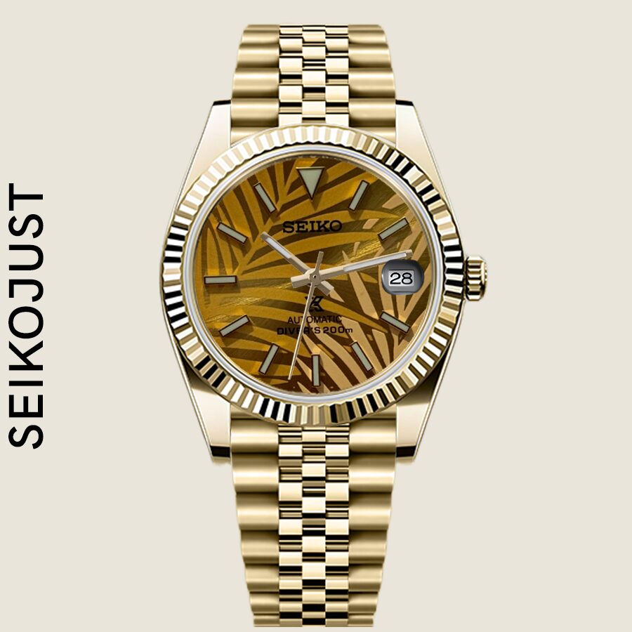 Вдохновленные культовым дизайном Datejust и оснащенные автоматическим механизмом Seiko NH35, мы представляем кастомные Seiko Mod Datejust PALM GOLD. Кастомные часы размером 39 мм, сочетающие в себе совершенство и доступность.