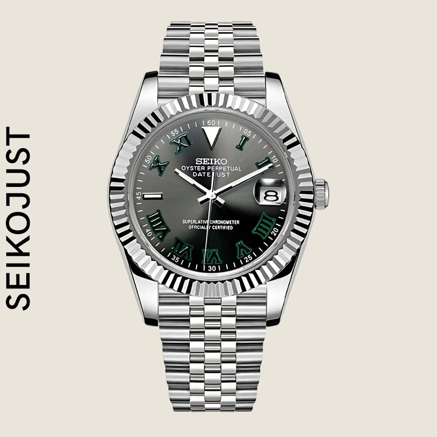Вдохновленные культовым дизайном Datejust и оснащенные автоматическим механизмом Seiko NH35, мы представляем кастомные Seiko Mod Datejust WIMBLEDON GREY. Кастомные часы размером 39 мм, сочетающие в себе совершенство и доступность.